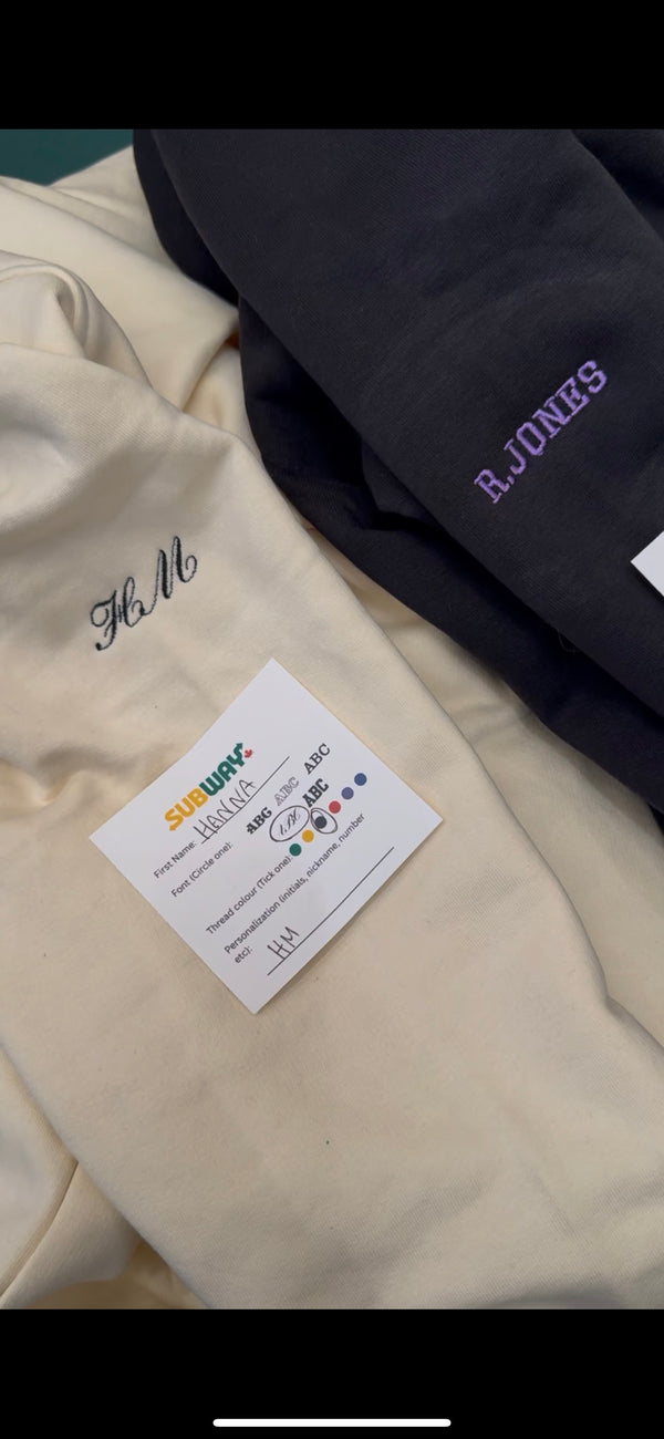During a 2-hour live embroidery event at Subway Canada in Vancouver, we personalized Raptors quarter-zips from the Peace Collective on-site. Guests were able to watch the embroidery happen in real time and choose from five font options and six thread colours — all coordinating with the Raptors and Subway branding. From nicknames and wedding anniversaries to Instagram handles, guests could embroider anything their hearts desired. It was an interactive and memorable experience that made each piece truly one-of-a-kind.